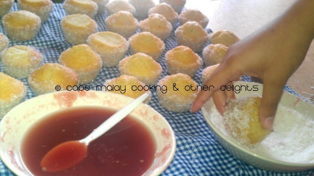 Roll the cakes in the coconut