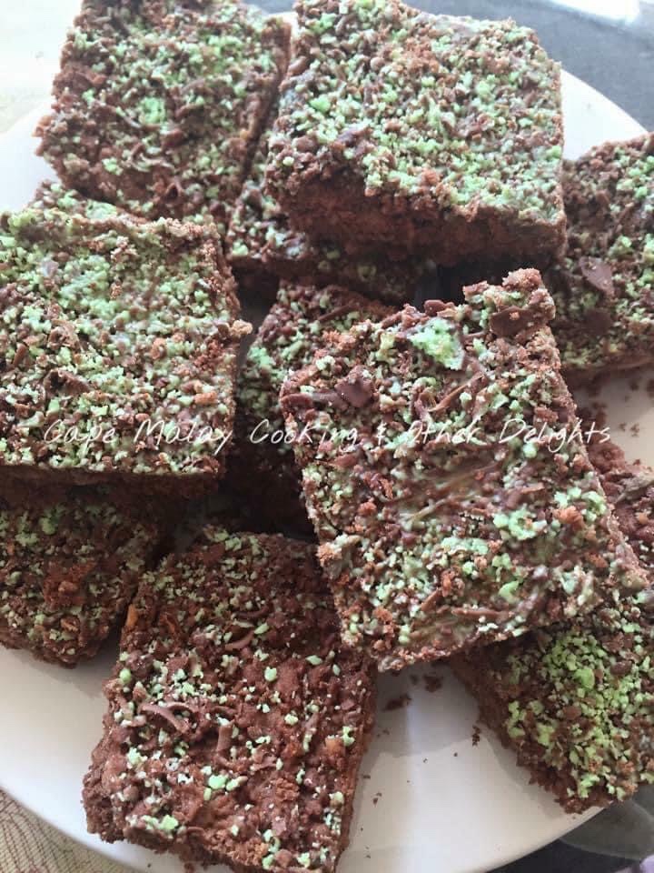 Cut in squares whilst still hot. Leave to cool before gently removing the crunchies.