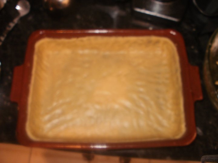 Boil the milk in a saucepan with the cardamom and stick cinnamon . Allow to cool. Whisk the eggs and sugar until light and fluffy. Strain the cooled milk, using something like a very fine strainer or sieve. Combine the milk and the eggs mixture.Pour the filling into the dish ensuring not to pour all the liquid on one place as it may cause a “hole”. Bake in a preheated oven at 180 C for 40 minutes until set.