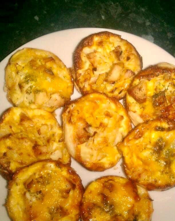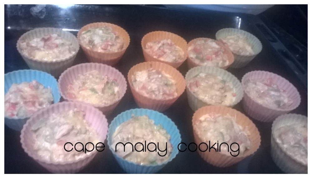 What to do? I haven’t gone shopping yet, so my grocery cupboards only had everyday necessities. After scratching my brain for ideas, I decided to make a quick bread, savoury scones using left over chicken of the previous day as well as oats and dates muffins. In the end everyone had an enjoyable breakfast / brunch and I was saved from embarrassment. Here follows my recipe for savoury muffins. I’ll post the oats & dates and the bread recipe on another occasion.