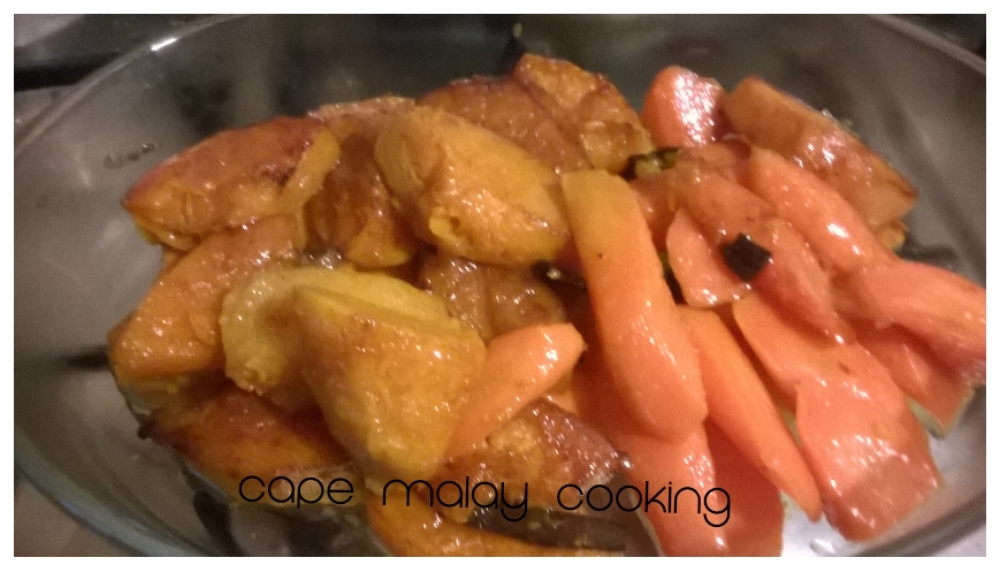 Peel, de-seed and slice butternut into small pieces. Peel carrots and cut into smaller pieces. Melt 50g unsalted butter and 50ml vegetable oil in a saucepan. When the butter/oil begins to bubble add a a couple of stick cinnamon and the butternut pieces. Brown on each side.